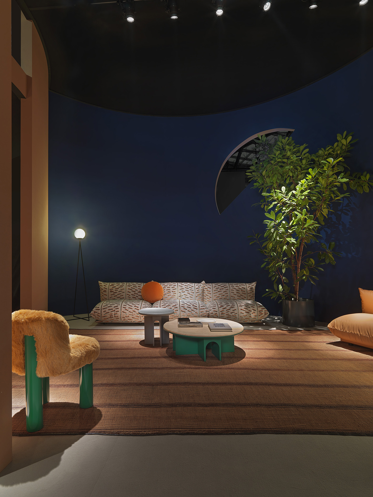 Warm coziness of Arflex stand invited it's visitors to experience the comfort of brand's collections in a moody and colourfully aesthetic setup.